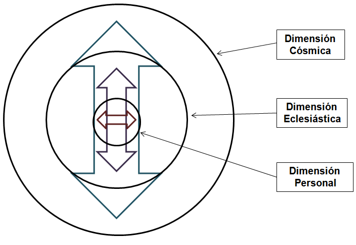 Yo creo que el Evangelio comprende tres dimensiones. Tiene una dimensión personal e individual, una dimensión corporativa y eclesiástica y una dimensión cósmica y eterna. La idea podría resumirse en una imagen: