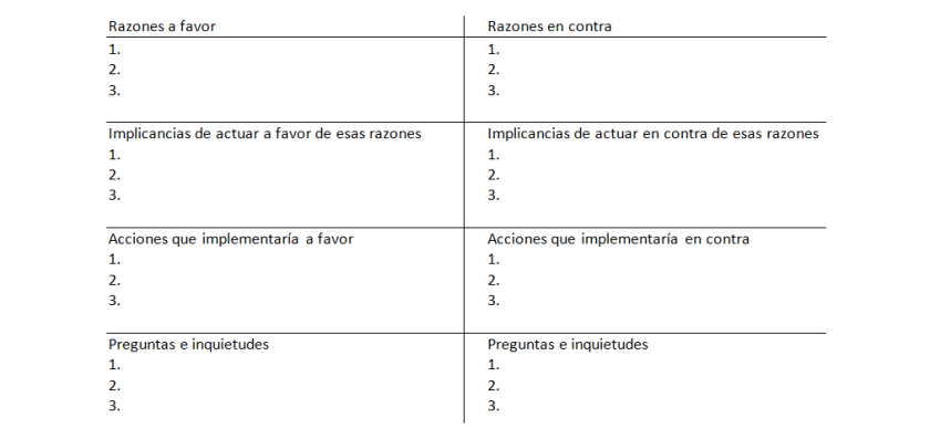 ¿Cómo tomé esas decisiones? El proceso empieza con un deseo, una preocupación, una carga, un plan, un objetivo o una intuición. Después de considerarlo mejor, suele brotar una pasión y un sentido del llamado divino. El proceso implica someter los deseos de mi corazón a una evaluación honesta de mis motivaciones, recursos, necesidades y oportunidades, factores que se conjugan con el consejo de otras personas. Muchas veces uso un cuadro simple para analizar cada decisión:
