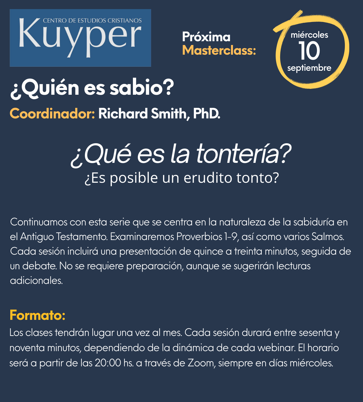 continuamos explorando la sabiduría en el Antiguo Testamento, analizando Proverbios 1-9 y diversos Salmos. Cada encuentro incluye una presentación breve y un espacio de debate.